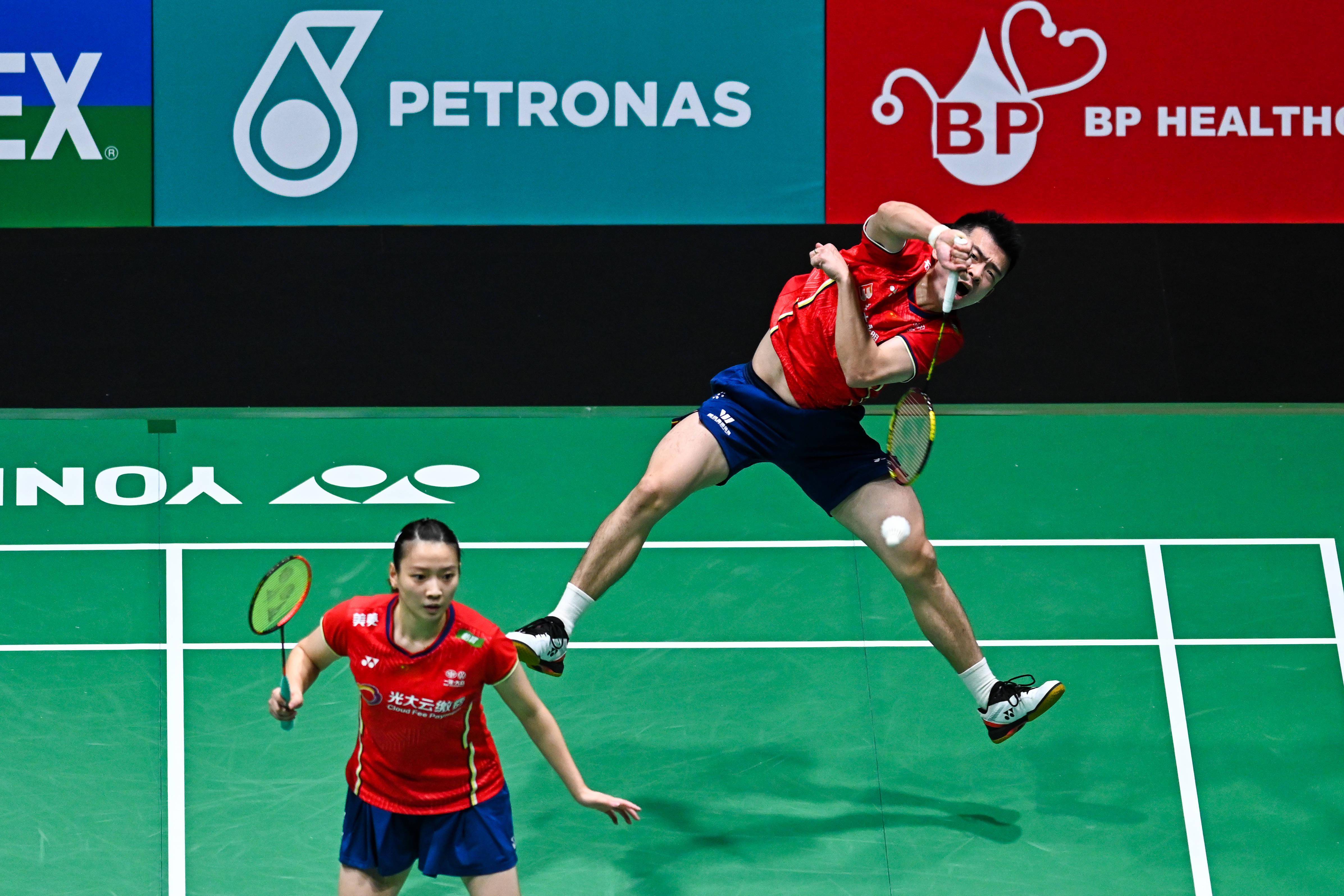 在决胜局,刘圣书谭宁和马来西亚组合蒂娜陈康乐一路打到18比比如陈雨...